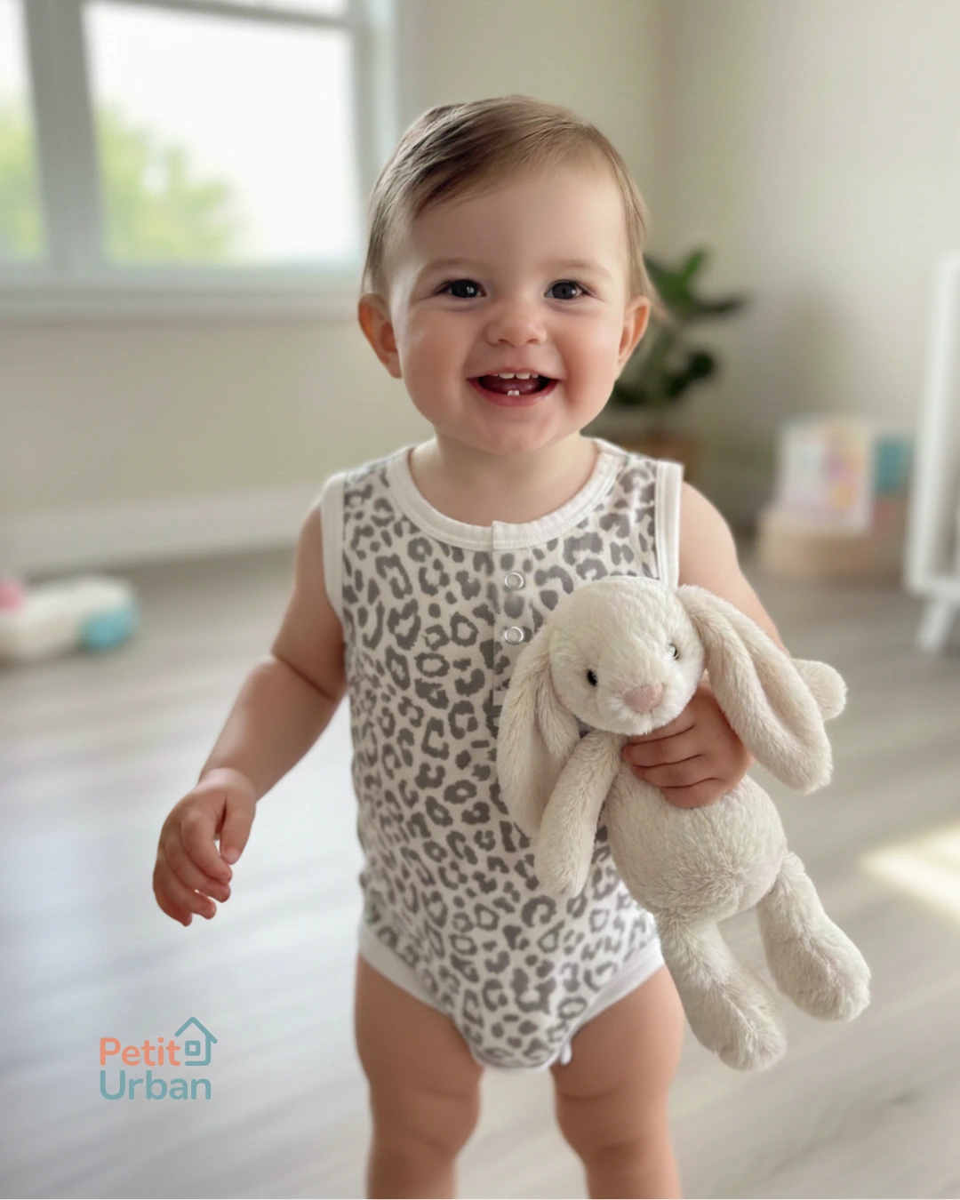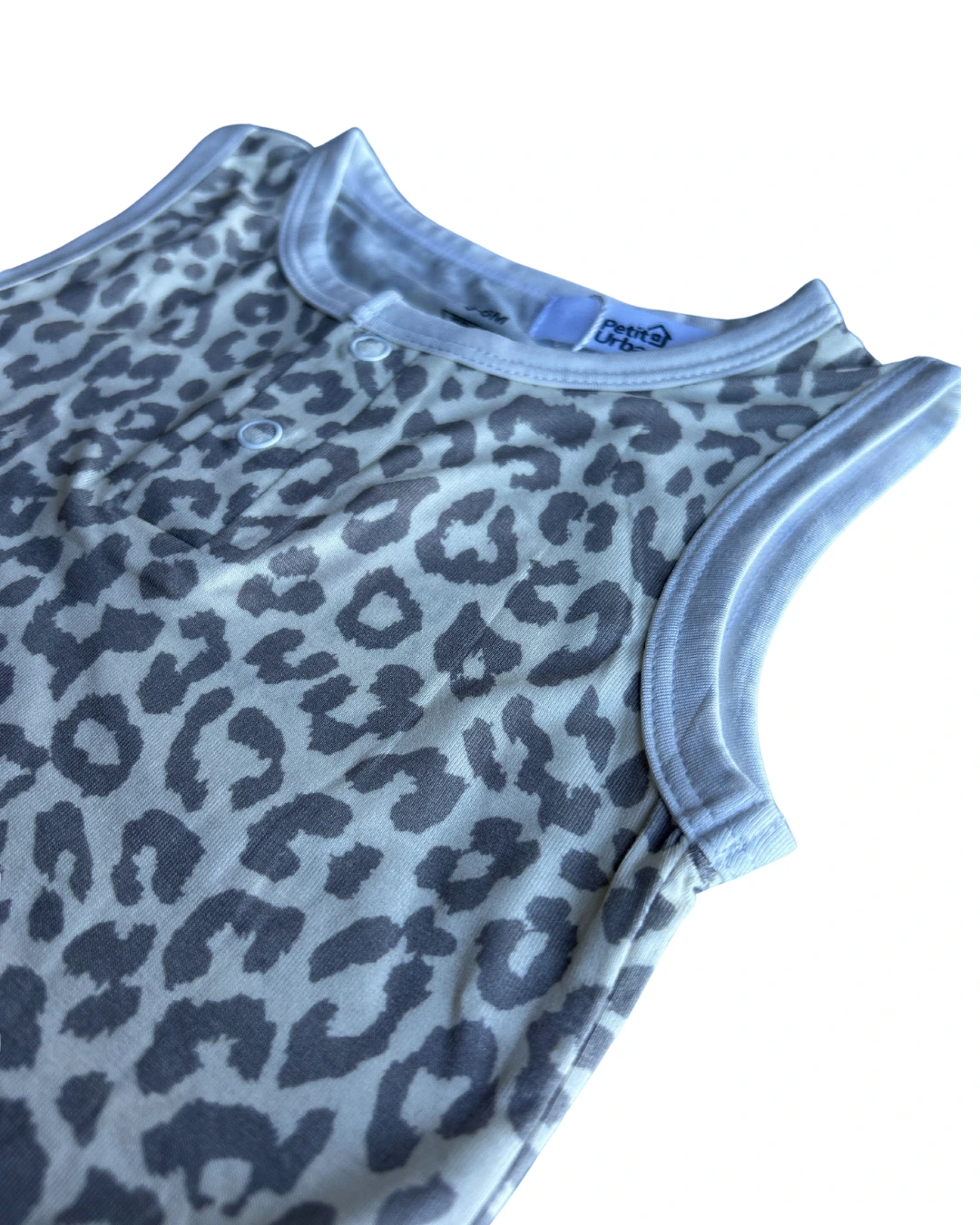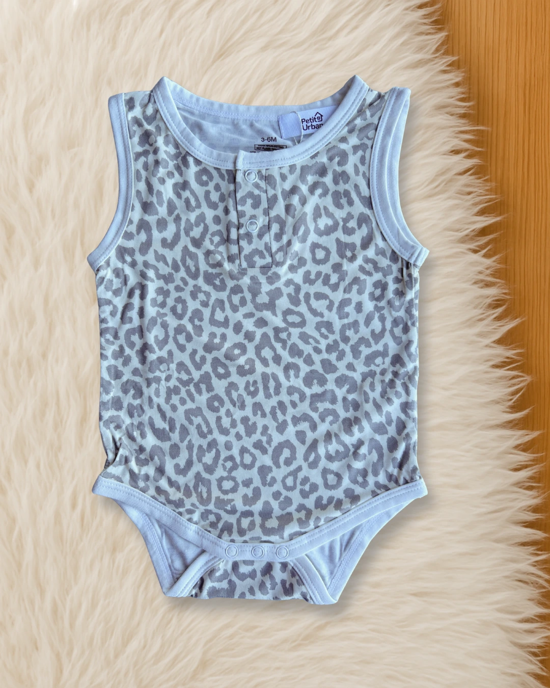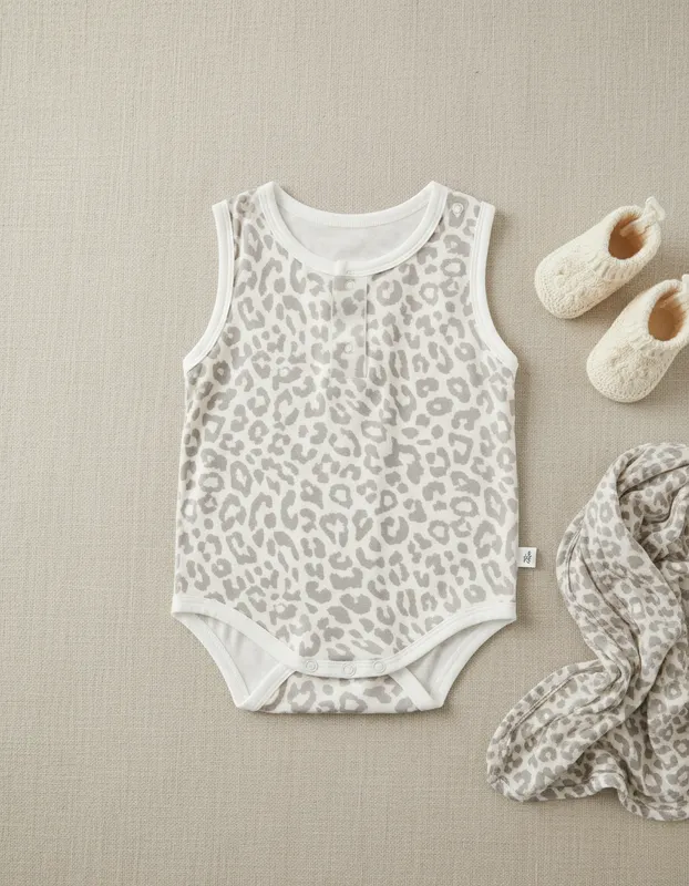 Este body sin mangas combina un diseño moderno y salvaje con la suavidad natural de la fibra de bamboo. Su estampado de animal print en tonos neutros es perfecto para un look actual y versátil.