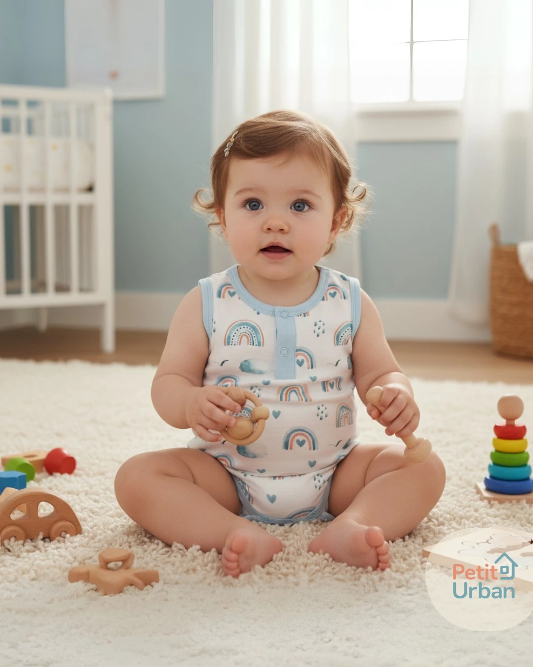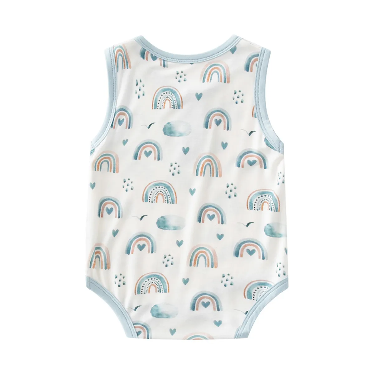 Este body sin mangas con estampa de arcoíris es perfecto para acompañar las primeras aventuras de tu bebé en primavera y verano.